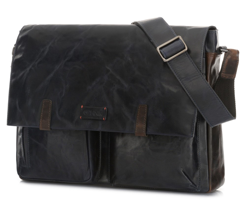 PÁNSKÁ KOŽENÁ TAŠKA - VELKÁ LISTONOŠKA, tmavá inkoustová s prvky hnědé