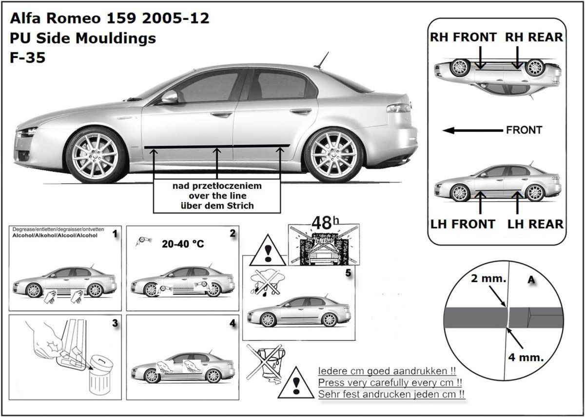Ochranné boční lišty na dveře, Alfa Romeo 159, 2005->2011, sedan