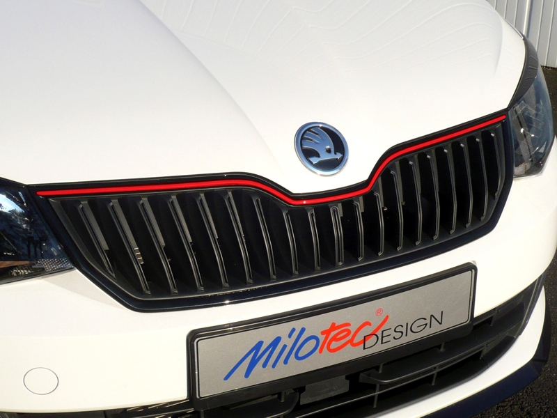 Racing lišta na přední masku, Škoda Fabia III - červená, 2014-2018
