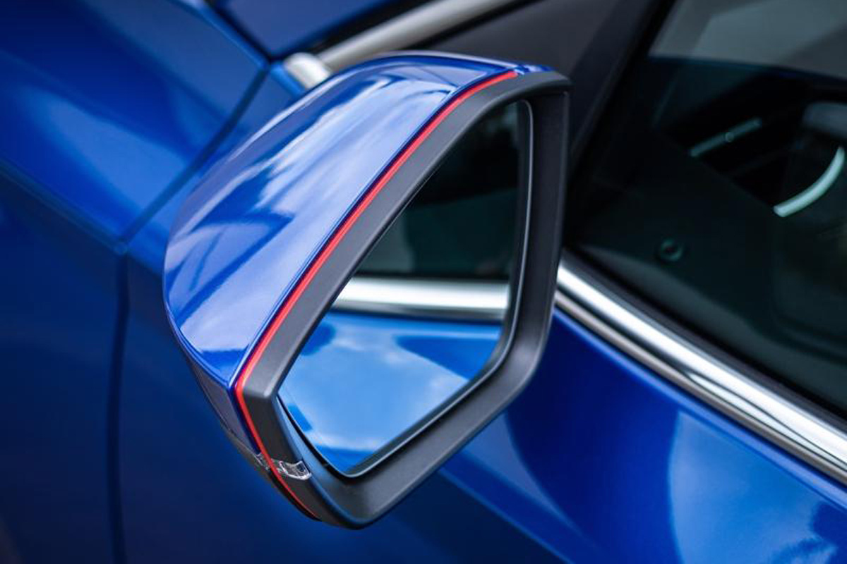 Design lišta zpětných zrcátek - červená, Škoda Scala, 2019-
