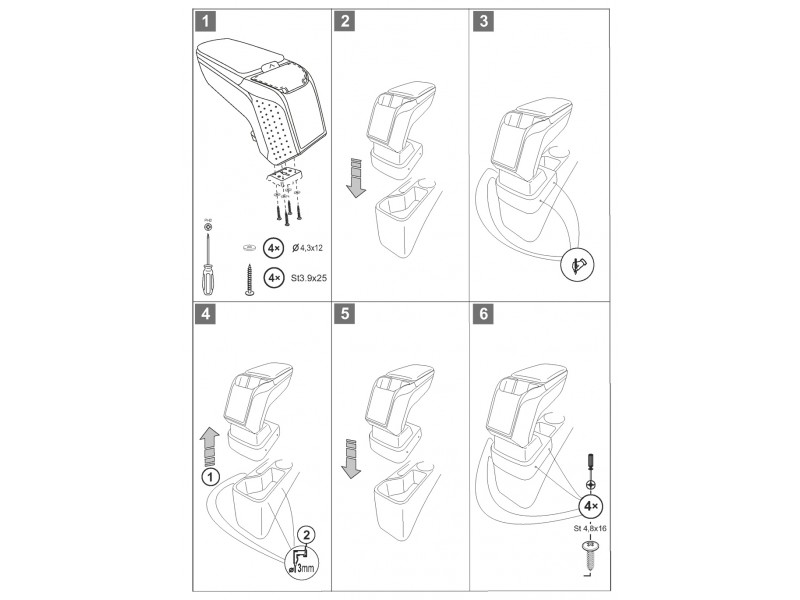 Montáž samotné opěrky je naprosto jednoduchá, není nutné navštěvovat autoservis. Návod je součástí balení. Adaptéry pro montáž loketní opěrky jsou vyráběny na konkrétní typy vozidel, a proto dokonale pasují. Nedostane se Vám do rukou žádný univerzální adaptér, který by způsobil problémy při montáži.