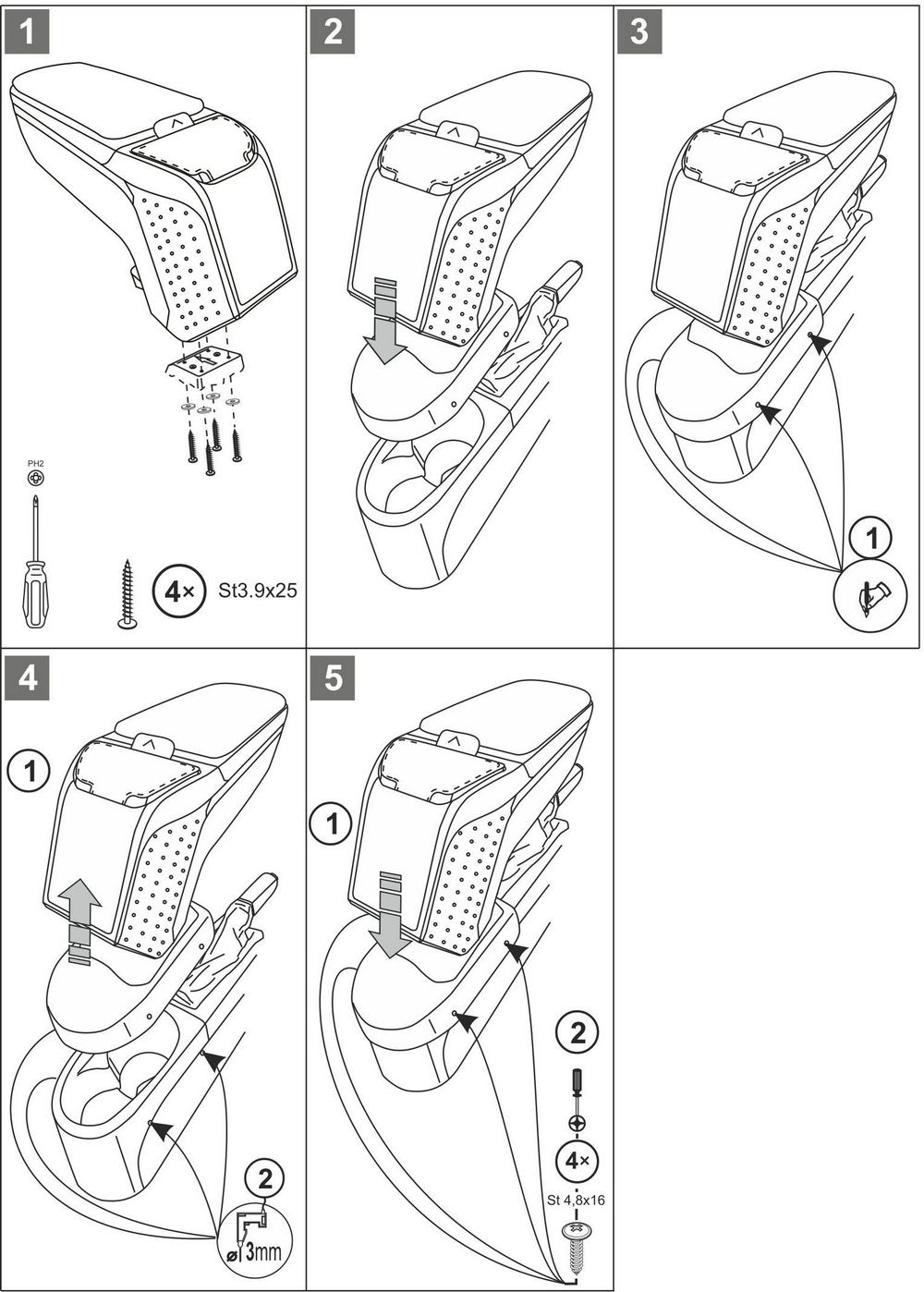 Loketní opěrka Armster II je velmi kvalitní a elegantní doplněk s kovovou mechanikou, který zkrášlí interiér Vašeho vozu. Její praktičnost spočívá v možnosti položení si na ni ruku během jízdy, což ocení nejenom řidič, ale i spolujezdec. Dále nabízí odkládací prostor, který lze otevřít pomocí tlačítka a je flokován měkkým semišovým materiálem. V odkládacím prostoru se nachází držáky na mince či pera. V zadní části loketní opěrky se nachází další odkládací prostor pro odložení mobilního telefonu, peněženky, klíčů, apod.