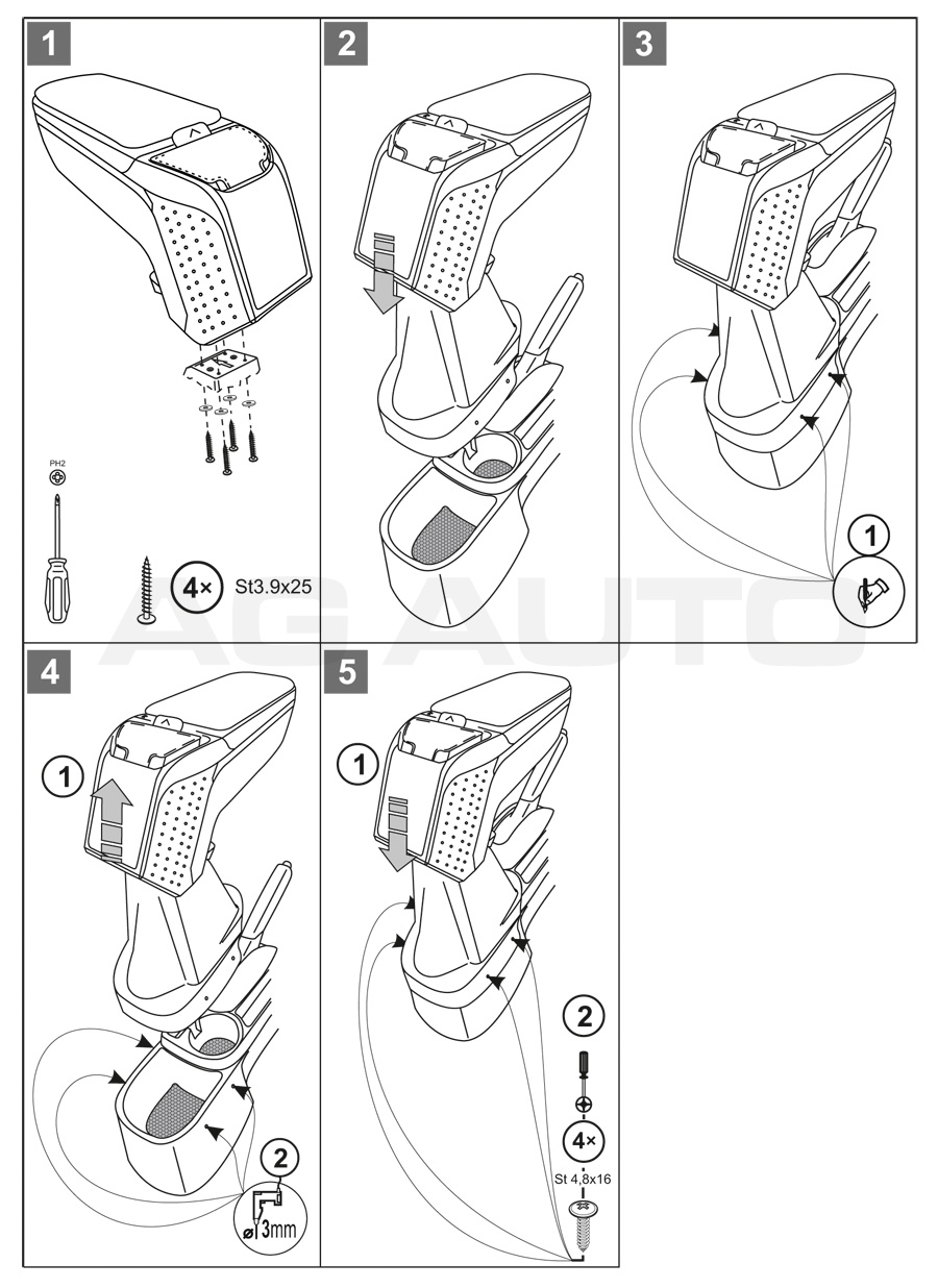 Loketní opěrka Armster II je velmi kvalitní a elegantní doplněk s kovovou mechanikou, který zkrášlí interiér Vašeho vozu. Její praktičnost spočívá v možnosti položení si na ni ruku během jízdy, což ocení nejenom řidič, ale i spolujezdec. Dále nabízí odkládací prostor, který lze otevřít pomocí tlačítka a je flokován měkkým semišovým materiálem. V odkládacím prostoru se nachází držáky na mince či pera. V zadní části loketní opěrky se nachází další odkládací prostor pro odložení mobilního telefonu, peněženky, klíčů, apod.