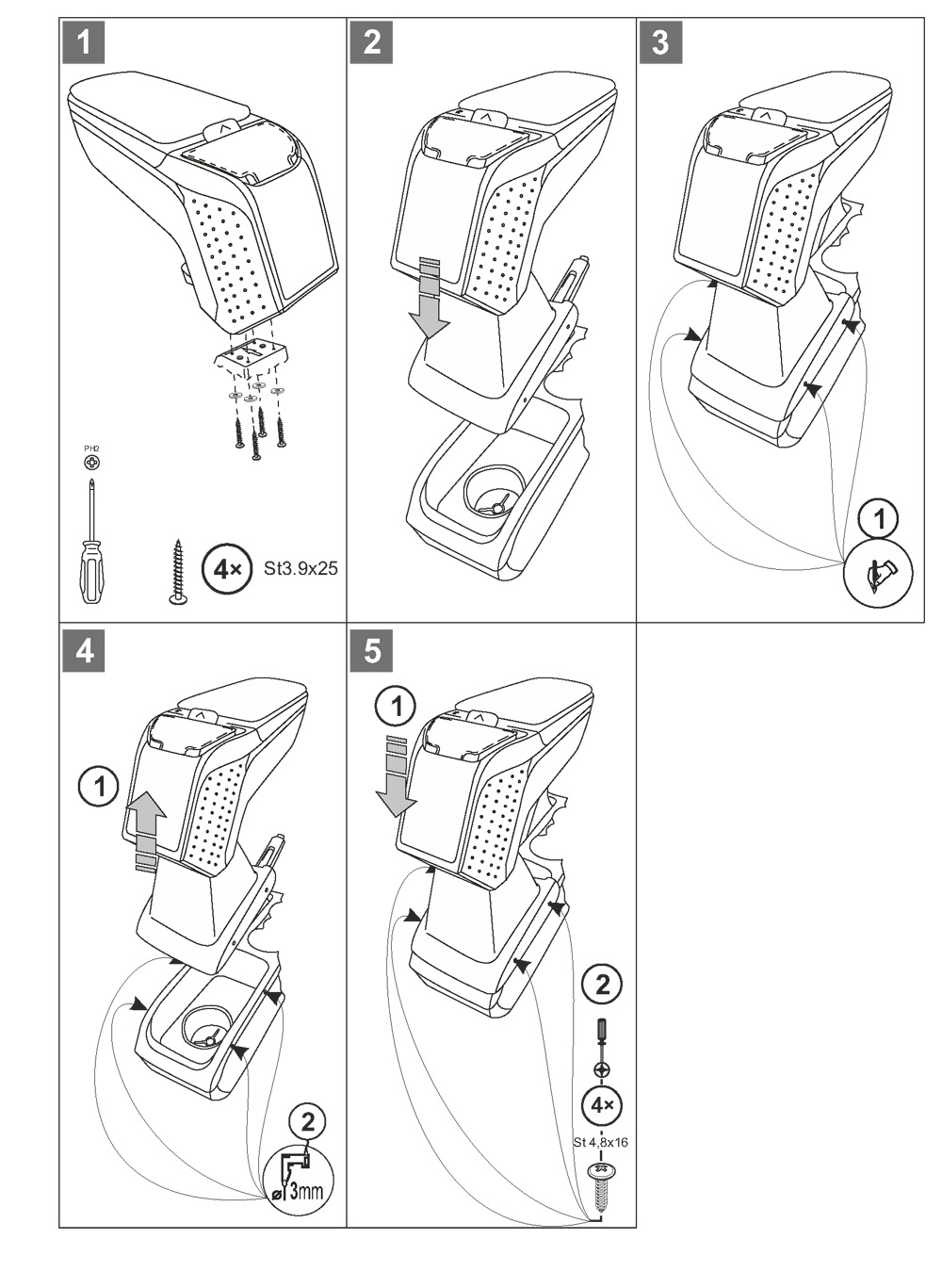 Loketní opěrka Armster II je velmi kvalitní a elegantní doplněk s kovovou mechanikou, který zkrášlí interiér Vašeho vozu. Její praktičnost spočívá v možnosti položení si na ni ruku během jízdy, což ocení nejenom řidič, ale i spolujezdec. Dále nabízí odkládací prostor, který lze otevřít pomocí tlačítka a je flokován měkkým semišovým materiálem. V odkládacím prostoru se nachází držáky na mince či pera. V zadní části loketní opěrky se nachází další odkládací prostor pro odložení mobilního telefonu, peněženky, klíčů, apod.