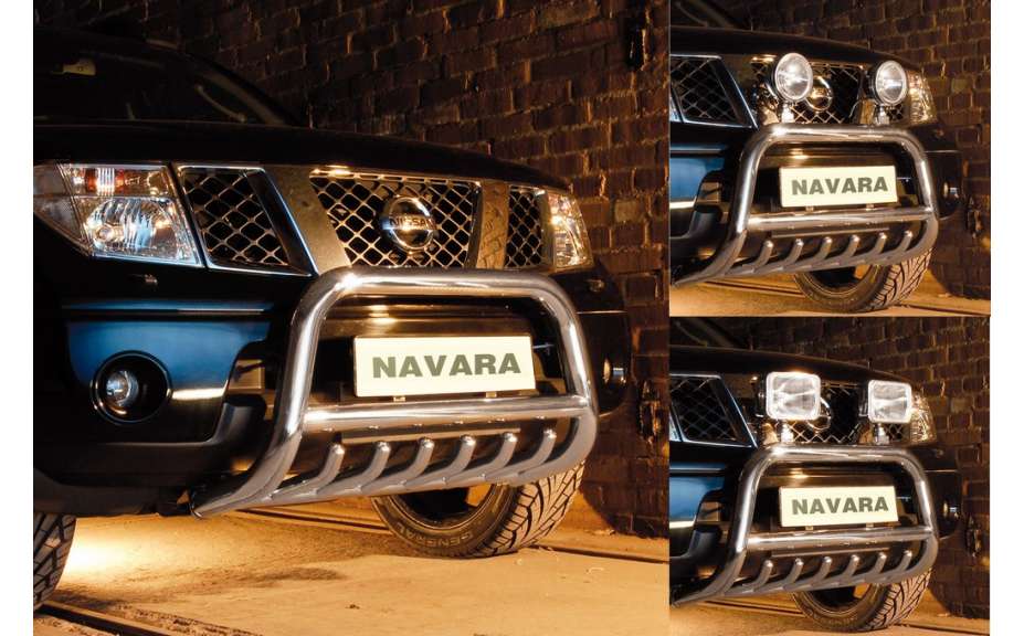 Ochranný přední rám se zuby nerez s EC homologací NISSAN NAVARA, 2005-2010