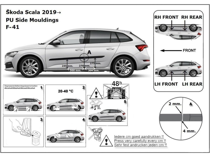 Ochranné boční lišty na dveře, Škoda Scala, 2019-