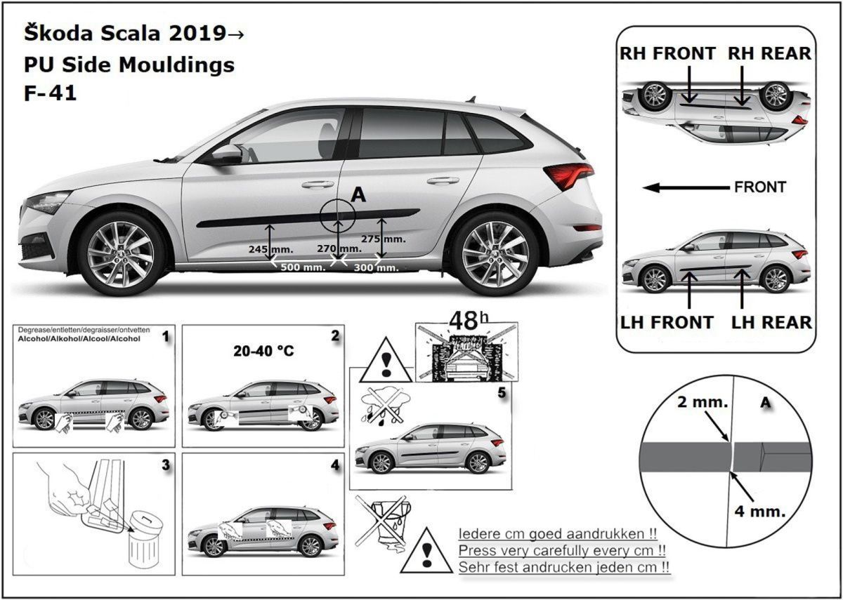 Ochranné boční lišty na dveře, Škoda Scala, 2019-
