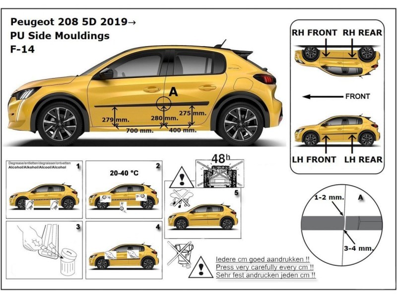 Ochranné boční lišty na dveře, Peugeot 208 II, 2019- , HTB, 5-dveř.