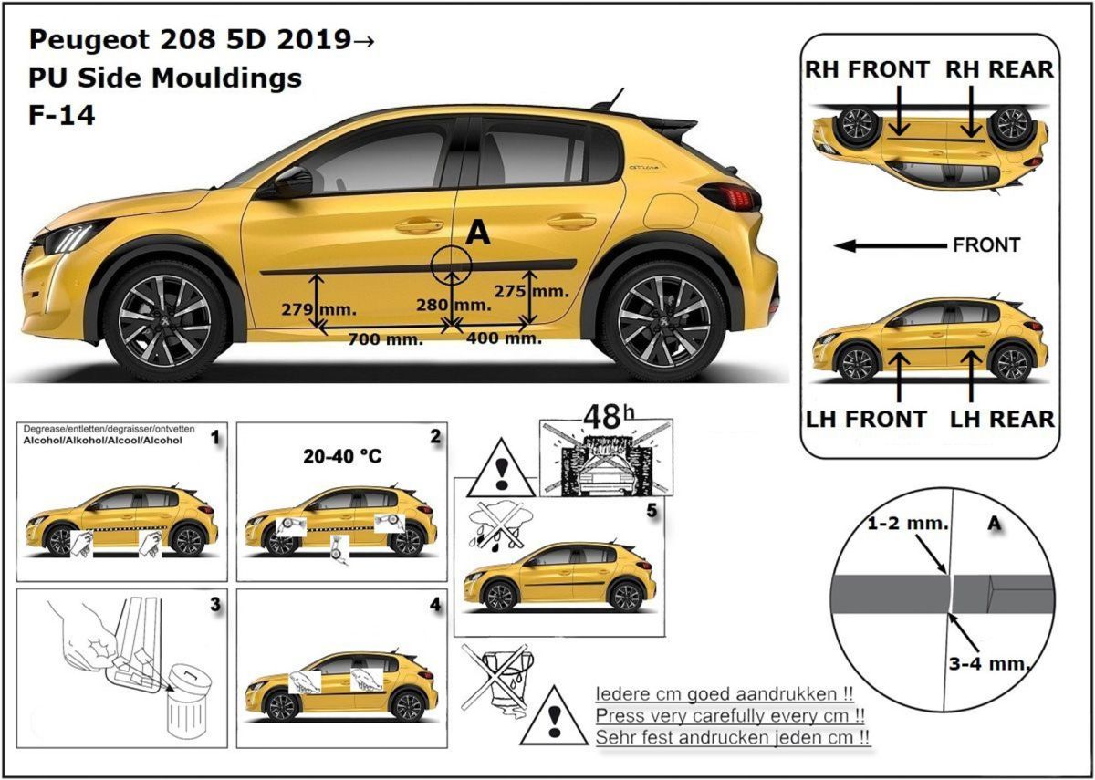 Ochranné boční lišty na dveře, Peugeot 208 II, 2019- , HTB, 5-dveř.