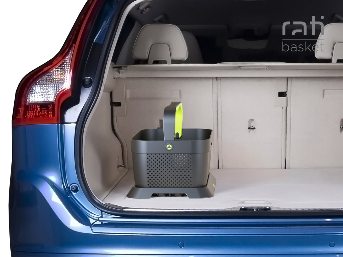 - Podstavec, který zůstává v zavazadlovém prostoru a košík do něj jen vložíte – takto se Vám již nic v autě nevysype