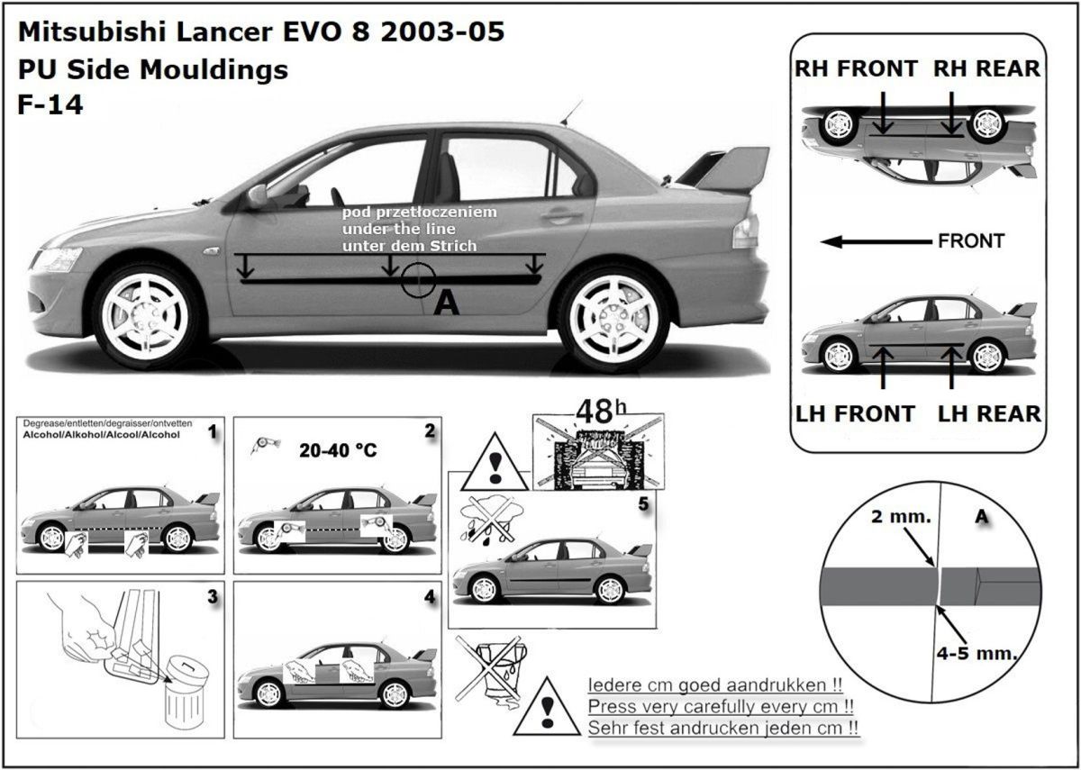 Ochranné boční lišty na dveře, Mitsubishi Lancer Evolution VII, 2003-2006