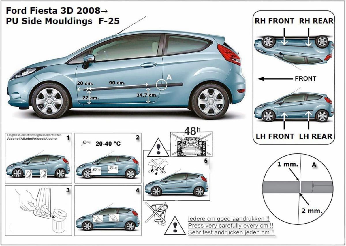 Ochranné boční lišty na dveře, Ford Fiesta VI, 2008-2017, 5-dveř.