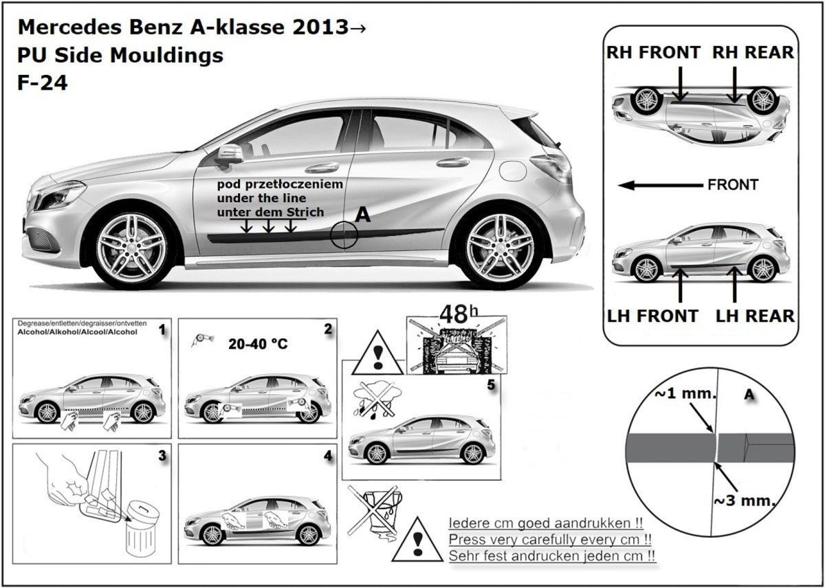 Ochranné boční lišty na dveře, Mercedes A-Klasse, W176, 2012-2018