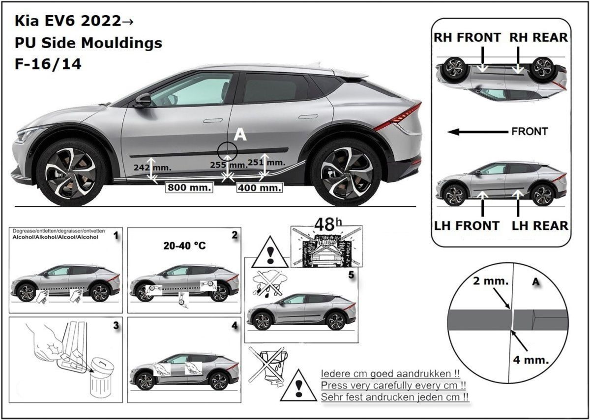 Ochranné lišty jsou vyráběny přesně na konkrétní model vozu, takže budou přesně pasovat na Váš vůz! Jejich montáž je velice snadná pomocí silně lepící pásky 3M, které je včetně odmašťovacích hadříků součástí balení. Návod na montáž.