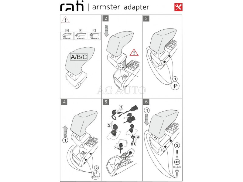 Součástí balení je adaptér vyrobený přesně na konkrétní vůz a montážní sada. Samotná montáž je velice snadná pomocí šroubků do středového tunelu. Loketní opěrka nabízí úložný prostor na mobil, peněženku, cennosti, apod. Hlava loketní opěrky je polohovatelná, aby se přizpůsobila ideálně svou výškou každému řidiči.