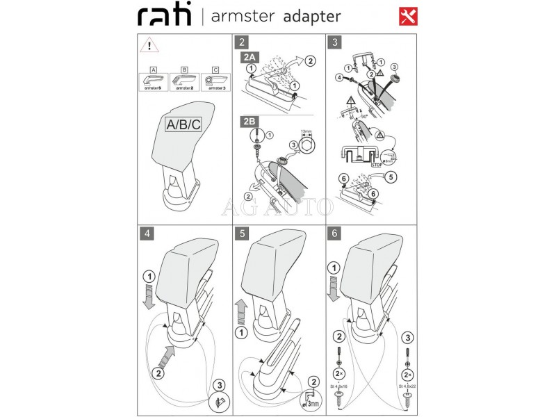 Součástí balení je adaptér vyrobený přesně na konkrétní vůz a montážní sada. Samotná montáž je velice snadná pomocí šroubků do středového tunelu. Loketní opěrka nabízí úložný prostor na mobil, peněženku, cennosti, apod. Hlava loketní opěrky je polohovatelná, aby se přizpůsobila ideálně svou výškou každému řidiči.