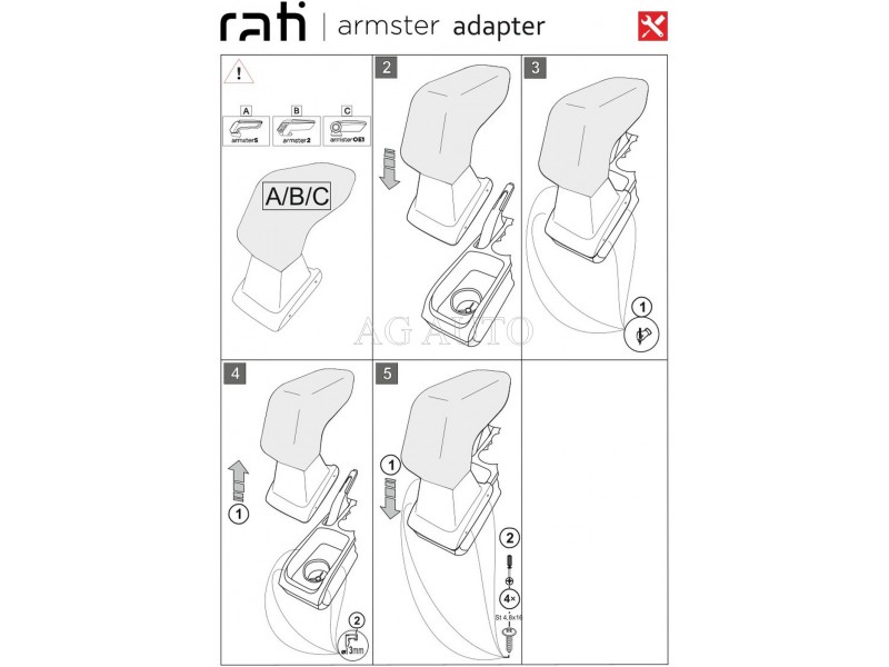 Součástí balení je adaptér vyrobený přesně na konkrétní vůz a montážní sada. Samotná montáž je velice snadná pomocí šroubků do středového tunelu. Loketní opěrka nabízí úložný prostor na mobil, peněženku, cennosti, apod. Hlava loketní opěrky je polohovatelná, aby se přizpůsobila ideálně svou výškou každému řidiči.