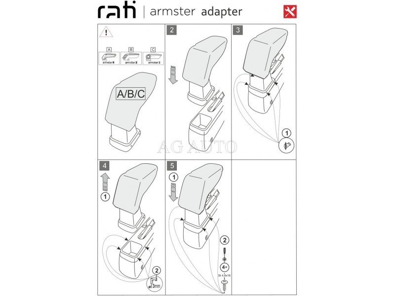 Součástí balení je adaptér vyrobený přesně na konkrétní vůz a montážní sada. Samotná montáž je velice snadná pomocí šroubků do středového tunelu. Loketní opěrka nabízí úložný prostor na mobil, peněženku, cennosti, apod. Hlava loketní opěrky je polohovatelná, aby se přizpůsobila ideálně svou výškou každému řidiči.