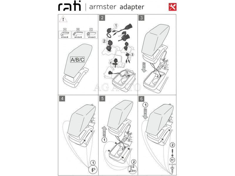 Součástí balení je adaptér vyrobený přesně na konkrétní vůz a montážní sada. Samotná montáž je velice snadná pomocí šroubků do středového tunelu. Loketní opěrka nabízí úložný prostor na mobil, peněženku, cennosti, apod. Hlava loketní opěrky je polohovatelná, aby se přizpůsobila ideálně svou výškou každému řidiči.