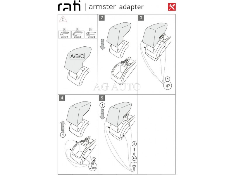 Součástí balení je adaptér vyrobený přesně na konkrétní vůz a montážní sada. Samotná montáž je velice snadná pomocí šroubků do středového tunelu. Loketní opěrka nabízí úložný prostor na mobil, peněženku, cennosti, apod. Hlava loketní opěrky je polohovatelná, aby se přizpůsobila ideálně svou výškou každému řidiči.