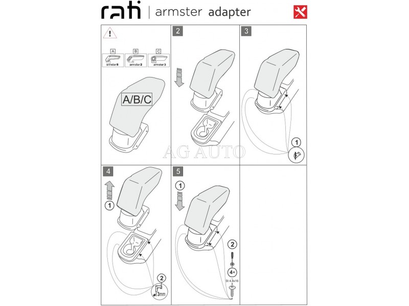Součástí balení je adaptér vyrobený přesně na konkrétní vůz a montážní sada. Samotná montáž je velice snadná pomocí šroubků do středového tunelu. Loketní opěrka nabízí úložný prostor na mobil, peněženku, cennosti, apod. Hlava loketní opěrky je polohovatelná, aby se přizpůsobila ideálně svou výškou každému řidiči.