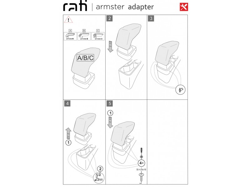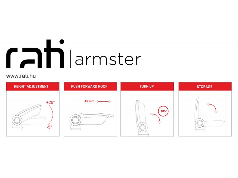 Součástí balení je adaptér vyrobený přesně na konkrétní vůz a montážní sada. Samotná montáž je velice snadná pomocí šroubků do středového tunelu. Loketní opěrka nabízí úložný prostor na mobil, peněženku, cennosti, apod. Hlava loketní opěrky je polohovatelná, aby se přizpůsobila ideálně svou výškou každému řidiči.
