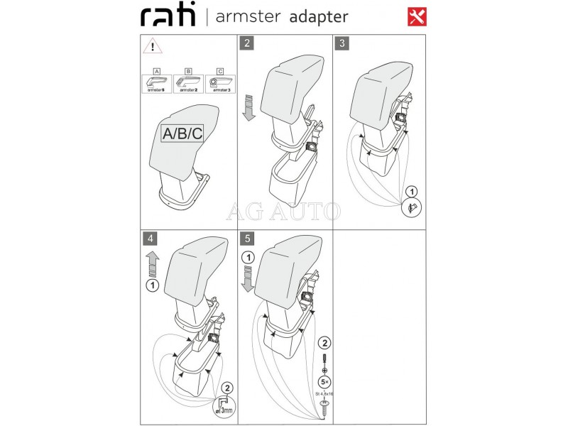 Součástí balení je adaptér vyrobený přesně na konkrétní vůz a montážní sada. Samotná montáž je velice snadná pomocí šroubků do středového tunelu. Loketní opěrka nabízí úložný prostor na mobil, peněženku, cennosti, apod. Hlava loketní opěrky je polohovatelná, aby se přizpůsobila ideálně svou výškou každému řidiči.