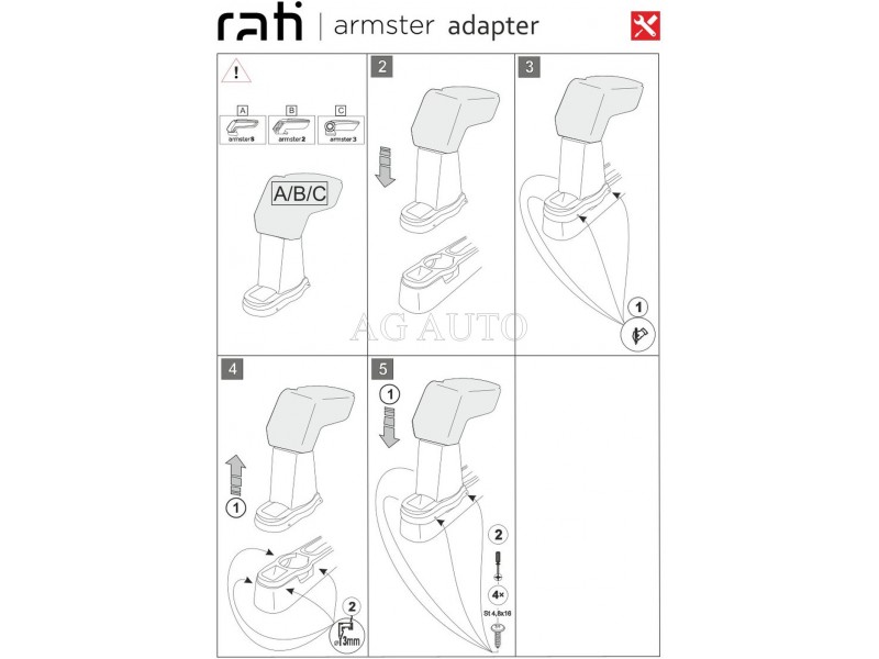 Součástí balení je adaptér vyrobený přesně na konkrétní vůz a montážní sada. Samotná montáž je velice snadná pomocí šroubků do středového tunelu. Loketní opěrka nabízí úložný prostor na mobil, peněženku, cennosti, apod. Hlava loketní opěrky je polohovatelná, aby se přizpůsobila ideálně svou výškou každému řidiči.