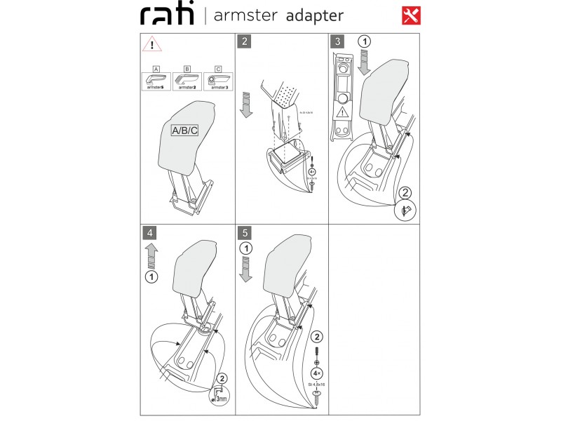 Součástí balení je adaptér vyrobený přesně na konkrétní vůz a montážní sada. Samotná montáž je velice snadná pomocí šroubků do středového tunelu. Loketní opěrka nabízí úložný prostor na mobil, peněženku, cennosti, apod. Hlava loketní opěrky je polohovatelná, aby se přizpůsobila ideálně svou výškou každému řidiči.