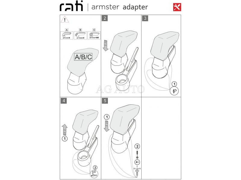 Součástí balení je adaptér vyrobený přesně na konkrétní vůz a montážní sada. Samotná montáž je velice snadná pomocí šroubků do středového tunelu. Loketní opěrka nabízí úložný prostor na mobil, peněženku, cennosti, apod. Hlava loketní opěrky je polohovatelná, aby se přizpůsobila ideálně svou výškou každému řidiči.