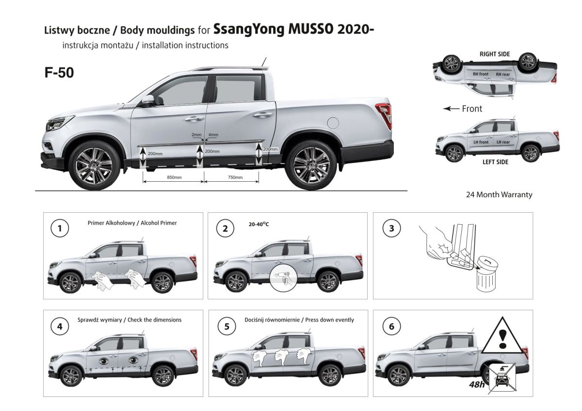 Ochranné lišty jsou vyráběny přesně na konkrétní model vozu, takže budou přesně pasovat na Váš vůz! Jejich montáž je velice snadná pomocí silně lepící pásky 3M, které je včetně odmašťovacích hadříků součástí balení. Návod na montáž.
