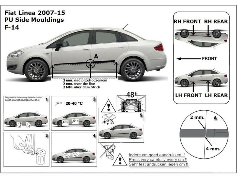 Ochranné boční lišty na dveře, Fiat Linea, 2007-2015