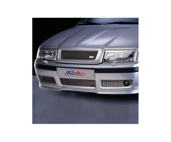 Třídílná mřížka nárazníku Milotec, nerez s mlhovkami, Škoda Octavia I, 2000 - 2010, po faceliftu