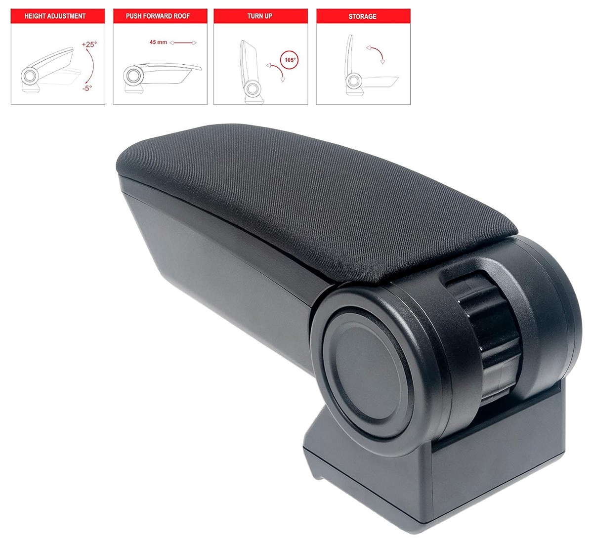 Originální loketní opěrka do auta vyrobena v EU. Zvyšuje pohodlí během řízení jak pro řidiče, tak spolujezdce. Velká opěrná plocha v masivním provedení nabízí maximální komfort pro opřenou ruku. Oceníte především při delších cestách. Vrchní část potažená tkaninou. Šířka opěrky je 124 mm, délka 315 mm s možností vysunutí vrchní části o 45 mm.