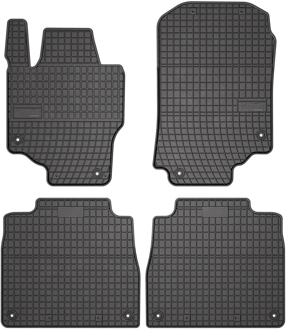 Koberce jsou vyráběny v černém provedení z kvalitní gumy, která má vysokou odolnost a životnost. Gumové rohože se velmi snadno udržují, stačí je pouze vytáhnout z auta a jednoduše opláchnout vodou. Pak stačí kobereček vytřít do sucha nebo nechat volně uschnout. Nehrozí, že by na gumě začala vznikat plíseň nebo se šířil v interiéru auta zápach.