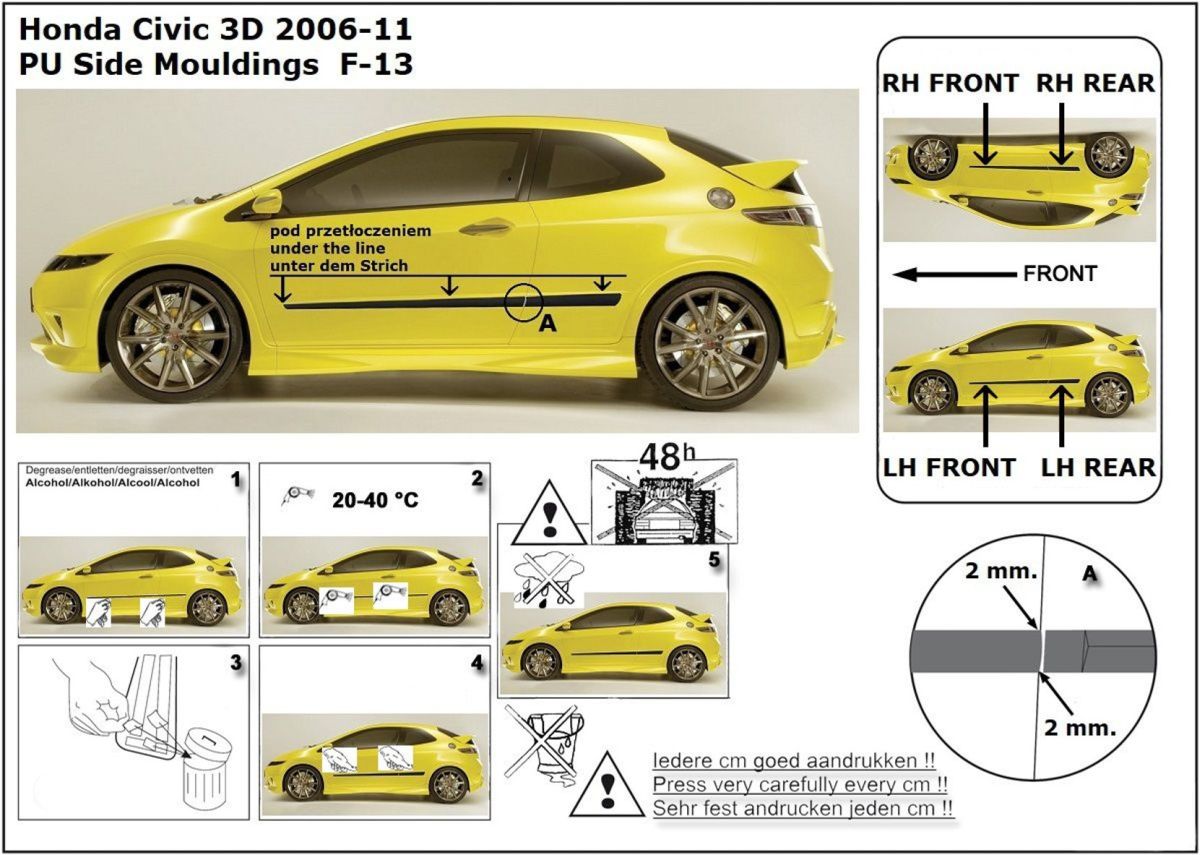Ochranné boční lišty na dveře, Honda Civic VIII, 200-2012, 3 dveř.