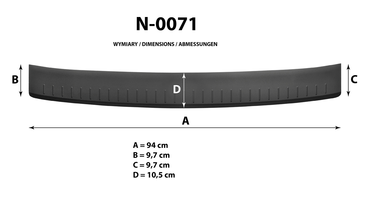 Plastové ochranné lišty na zadní nárazník auta je ochranný a estetický autodoplněk, který ochrání hranu zadního nárazníku před odřením či poškrábáním. Lišta přesahuje lem nárazníku, čímž dokáže zamezit poškození zadního nárazníku při parkování. Rovněž zabraňuje poškození nárazníku při nakládání věcí do kufru.