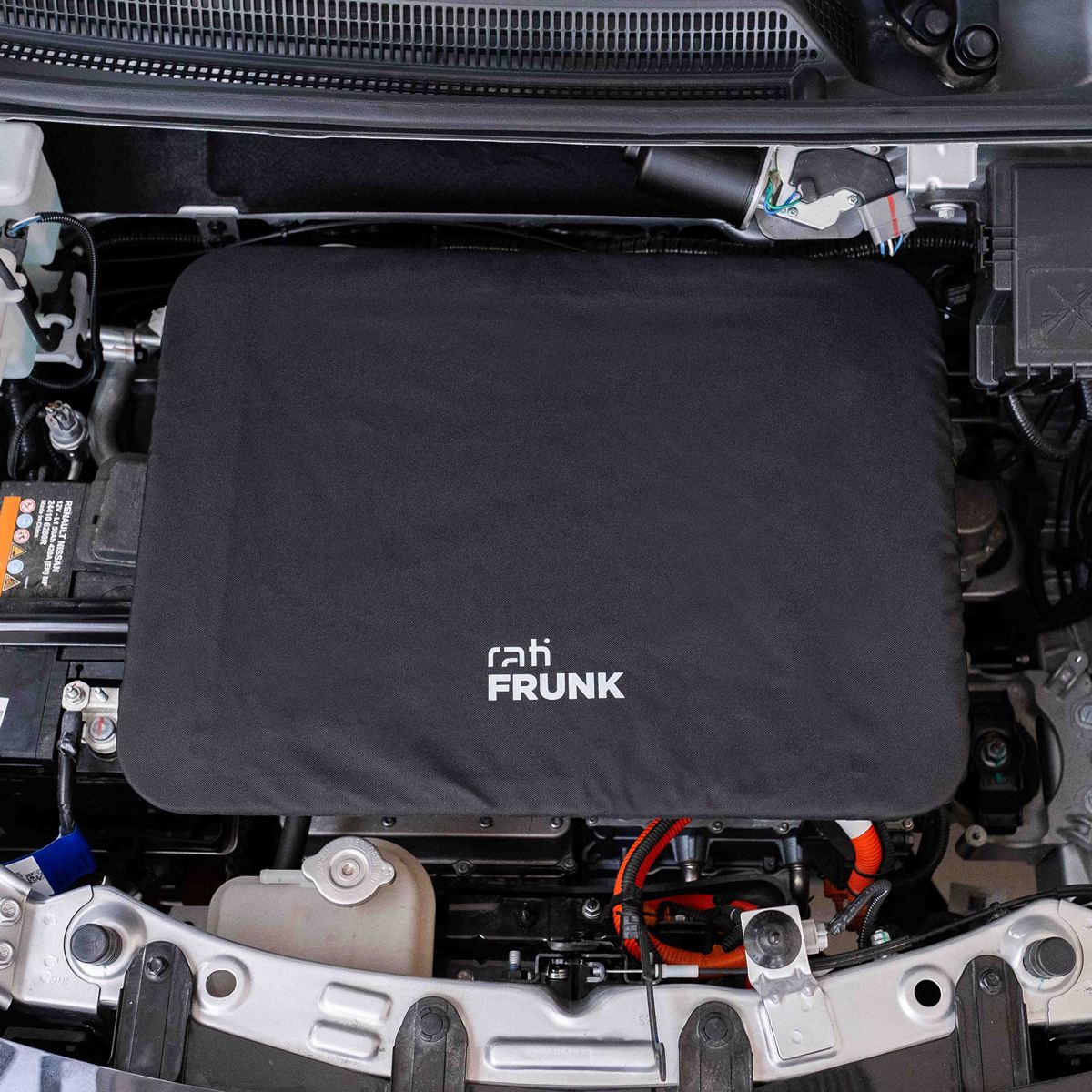 Frunk má kompaktní rozměry 44×31×13 cm a objem 20 litrů, což z něj činí ideálního společníka pro denní použití. Instalace frunku je snadná a trvá přibližně 15 minut díky montážní sadě, která je součástí balení. S frunkem se tak stává prostor pod kapotou elektrického auta nejen praktickým, ale i funkčním a bezpečným úložištěm pro vše, co potřebujete při svých cestách.