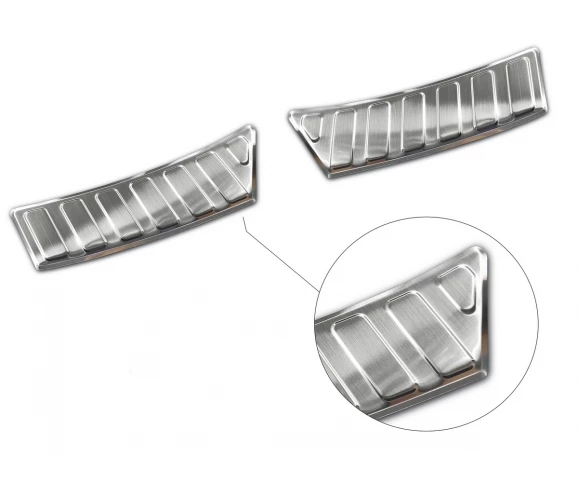 Nerezové ochranné lišty na zadní nárazník slouží především jako ochrana horní hrany zadního nárazníku před poškrábáním nebo odřením. Nejčastěji zamezíte poškození nárazníků při nakládání a vykládání zboží, nákupů, nářadí a sportovních potřeb do a ze zavazadlového prostoru. Své velké uplatnění najdou i při parkování, kdy dokonale ochrání nárazník před poškozením. Lišty na hranu kufru jsou vyráběny z kvalitní nerezové oceli, která má dlouhou životnost a vysokou odolnost. Namontováním lišty na Váš vůz mu dodáte na eleganci a sportovním vzhledu.