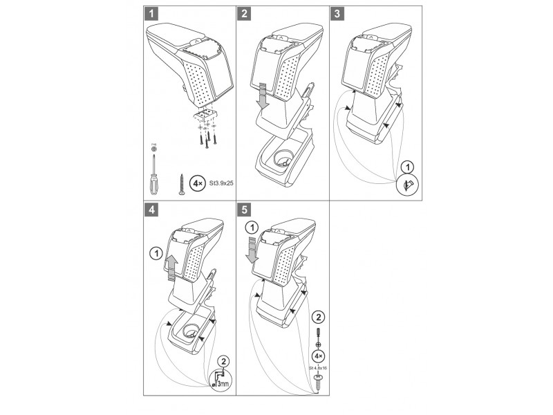 Montáž samotné opěrky je naprosto jednoduchá, není nutné navštěvovat autoservis. Návod je součástí balení. Adaptéry pro montáž loketní opěrky jsou vyráběny na konkrétní typy vozidel, a proto dokonale pasují. Nedostane se Vám do rukou žádný univerzální adaptér, který by způsobil problémy při montáži.