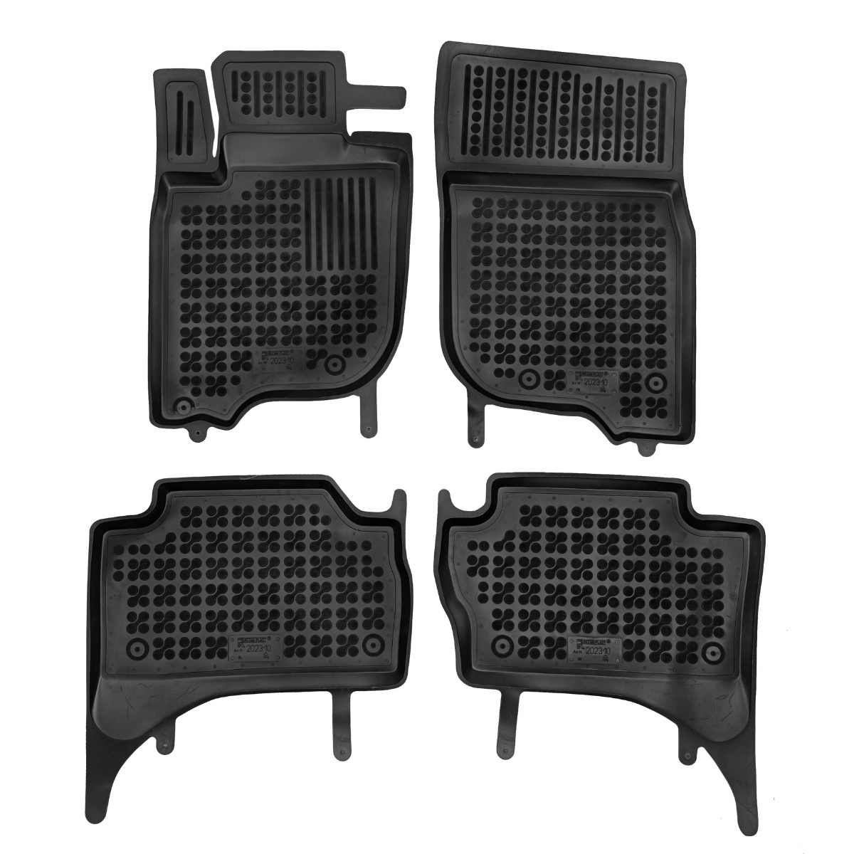 Gumové koberce jsou vyrobeny na míru pro konkrétní modelovou řadu vozidla, vždy tedy perfektně pasují a dokonale chrání podlahu vozu před vodou a nečistotami. Zároveň jsou vyrobeny z kvalitní gumy, která je protiskluzová a lehce udržovatelná, stačí jí omývat pouhou vodou. Kvalitní materiál také zajišťuje dlouhou životnost.