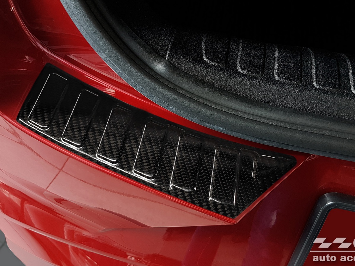 Carbonové ochranné lišty na zadní nárazník slouží především jako ochrana horní hrany zadního nárazníku před poškrábáním nebo odřením. Své velké uplatnění najdou i při parkování, kdy dokonale ochrání nárazník před poškozením. Lišty na hranu kufru jsou vyráběny z kvalitního carbonového vlákna, které vyniká vysokou odolností, lehkostí a moderním vzhledem. Namontováním lišty na Váš vůz mu dodáte elegantní a sportovní vzhled.