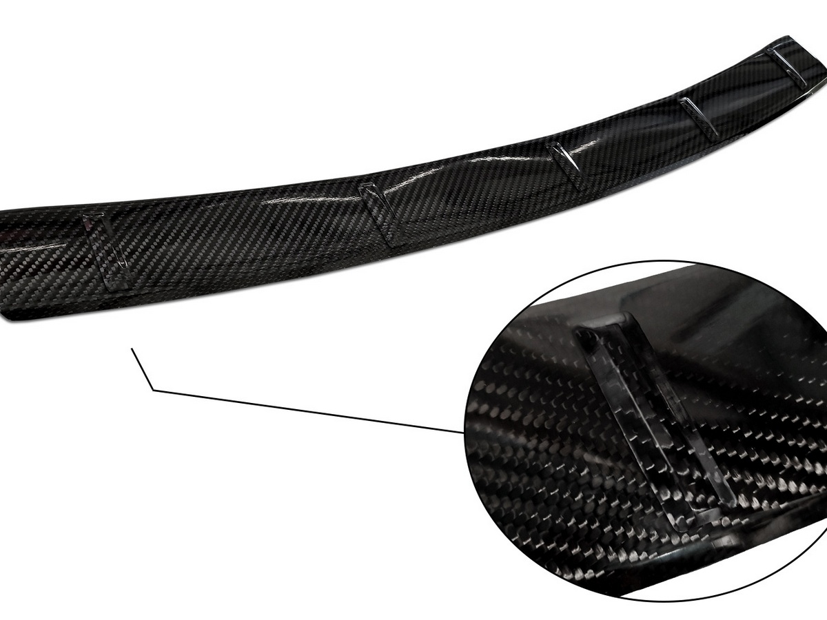 Carbonové ochranné lišty na zadní nárazník slouží především jako ochrana horní hrany zadního nárazníku před poškrábáním nebo odřením. Své velké uplatnění najdou i při parkování, kdy dokonale ochrání nárazník před poškozením. Lišty na hranu kufru jsou vyráběny z kvalitního carbonového vlákna, které vyniká vysokou odolností, lehkostí a moderním vzhledem. Namontováním lišty na Váš vůz mu dodáte elegantní a sportovní vzhled.