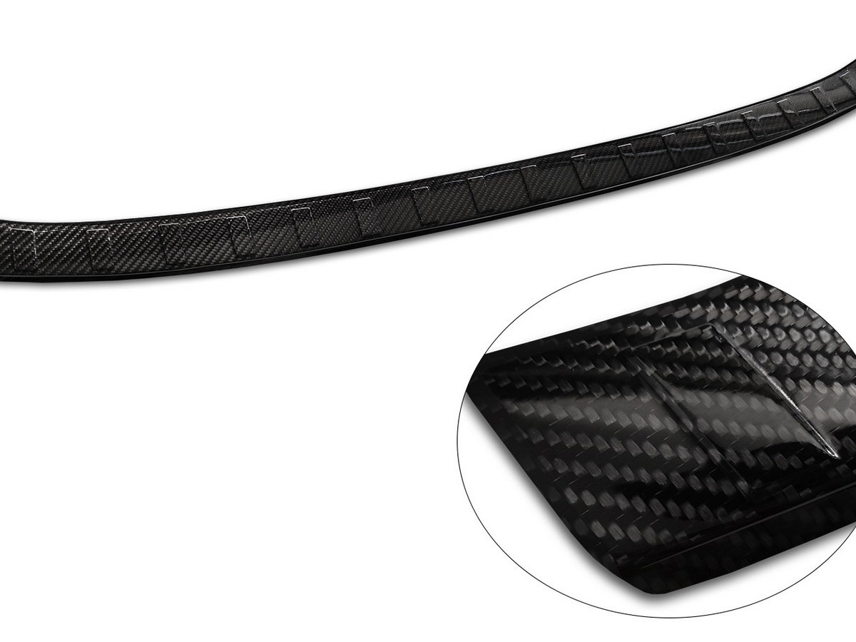 Carbonové ochranné lišty na zadní nárazník slouží především jako ochrana horní hrany zadního nárazníku před poškrábáním nebo odřením. Své velké uplatnění najdou i při parkování, kdy dokonale ochrání nárazník před poškozením. Lišty na hranu kufru jsou vyráběny z kvalitního carbonového vlákna, které vyniká vysokou odolností, lehkostí a moderním vzhledem. Namontováním lišty na Váš vůz mu dodáte elegantní a sportovní vzhled.