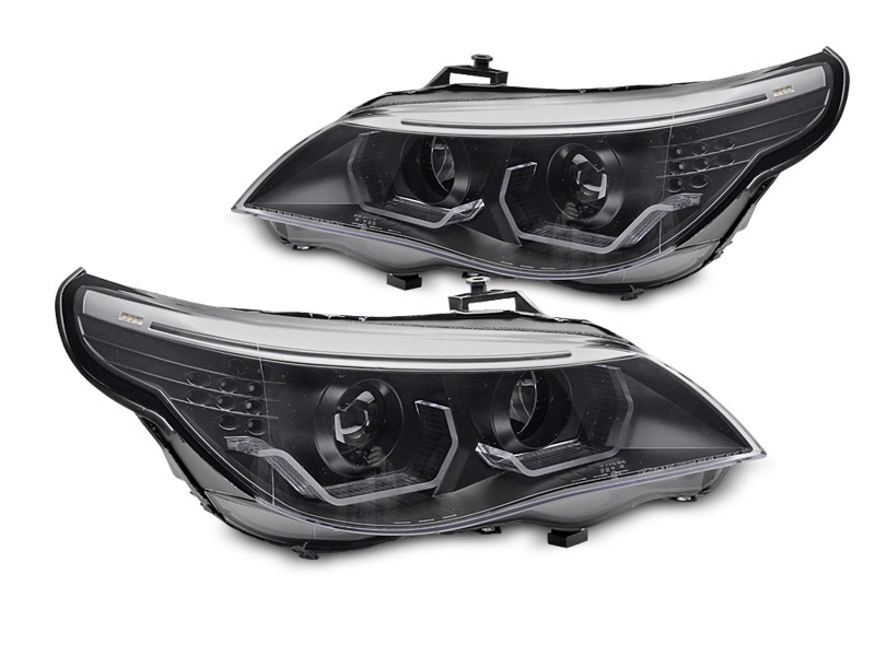 Přední světla, BMW 5, E60/E61, 2003-2007, Angel Eyes, 3D LED, Black
