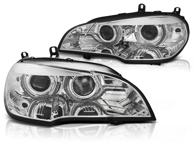 Přední světla, BMW X5, E70, 2007-2010, Angel Eyes, Xenon, DRL, Chrom