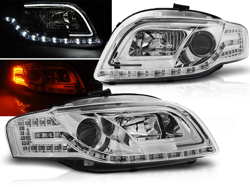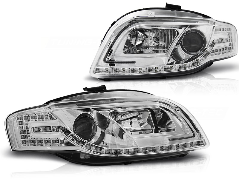 Přední světla, Audi A4, B7, 2004-2008, Tube Light, Chrom