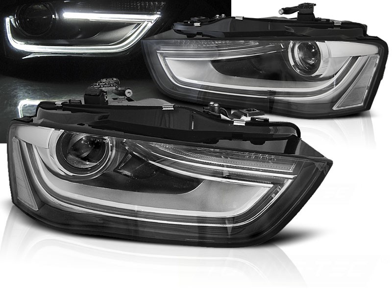 Přední světla, Audi A4, B8, 2012-2015, True DRL, Black