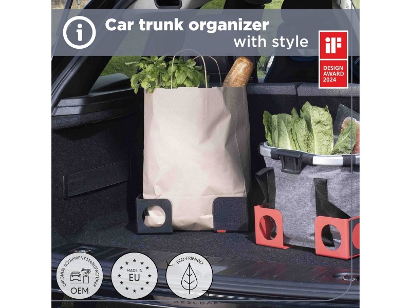 Jednoduché řešení pro denní použití ve vozidle. Různé barevné provedení. Velice lehké a skladné (možnost skladování NOOKU na sebe). Maximálně odolné a žáruvzdorné. Velice snadné použití a už žádné létající věci po kufru auta!