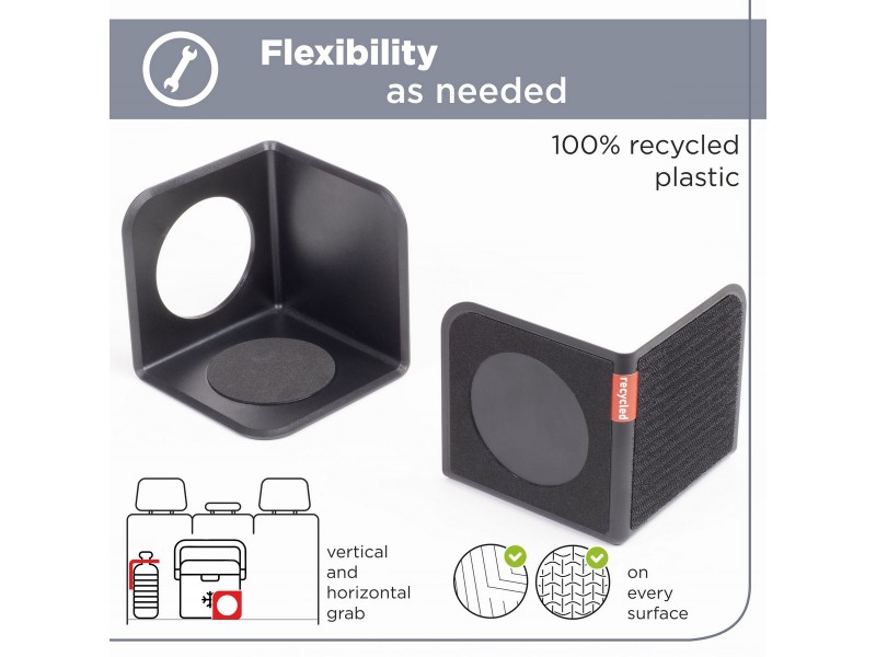 Inovativní zarážky zamezí pohybu vašeho nákupu, tašek, nářadí, Vašeho náčiní a jiných převážených věcí v zavazadlovém prostoru. Jedna strana stabilizátoru je vybavena robustní protiskluzovou úpravou, aby pevně držela na rovném povrchu nebo gumové podložce auta. Druhá strana je opatřena suchým zipem, který lze pevně připevnit kdekoliv k semišovým povrchům. Oceníte především u převozu lahví.